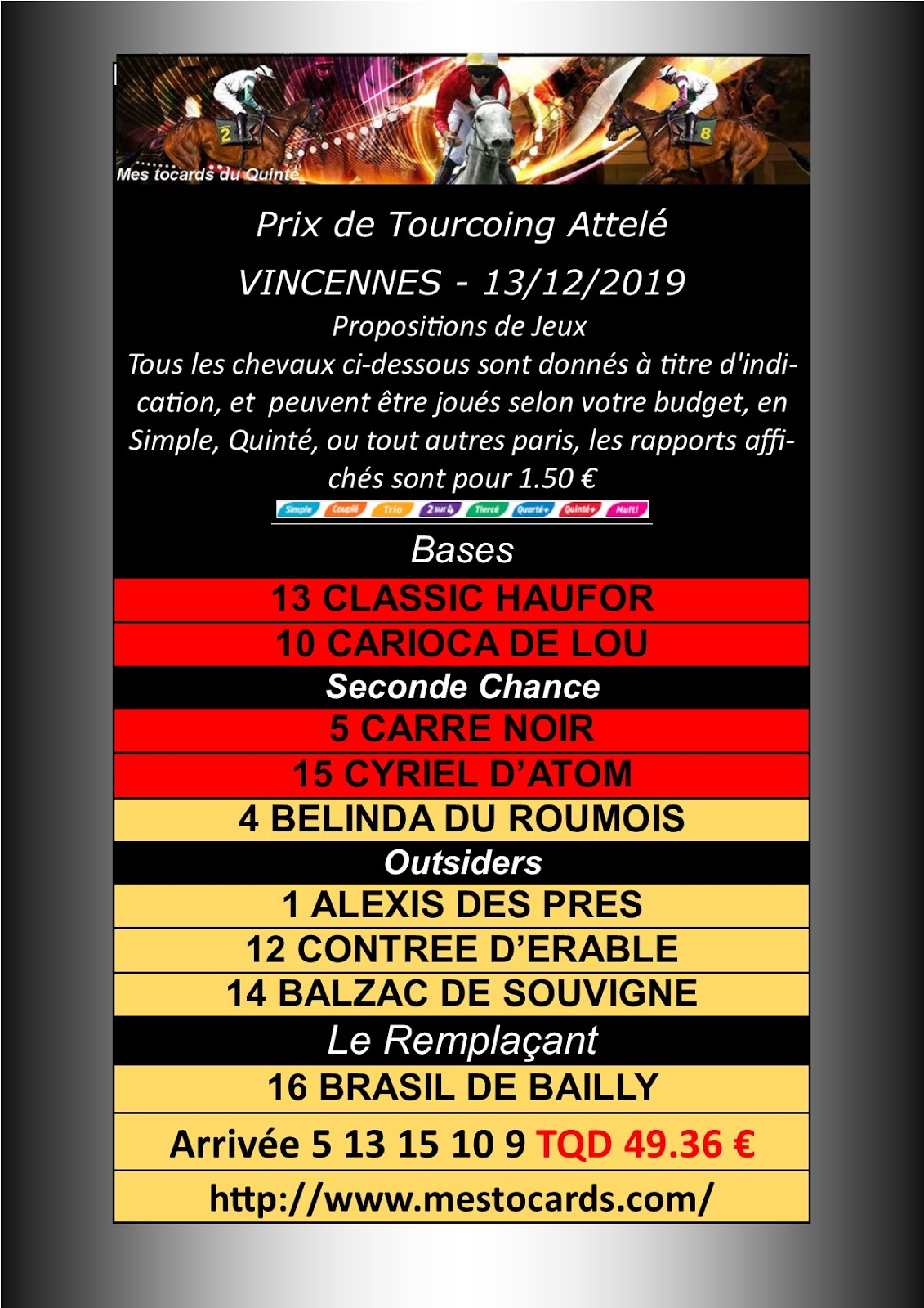 Quinté+ R1 C1 VINCENNES - 13/12/2019